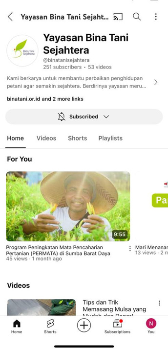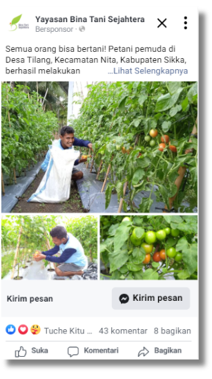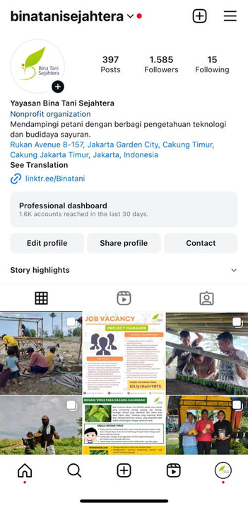 Yayasan Bina Tani Sejahtera uses Facebook, Instagram, and YouTube as a thriving hub where farmers share experiences and access valuable insights.